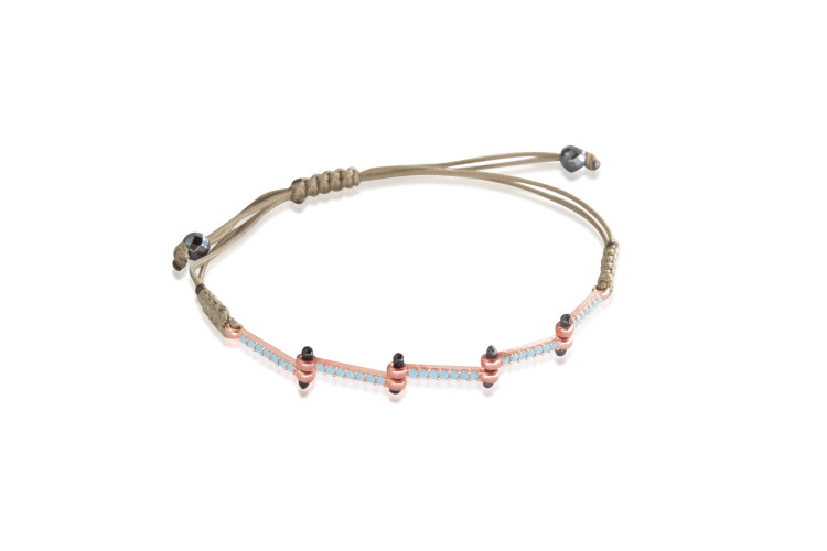 SPARKLE collection women's bracelet with beige coloured cord made of rose plated sterling silver 925, decorated with turquoise cubic zirconia.