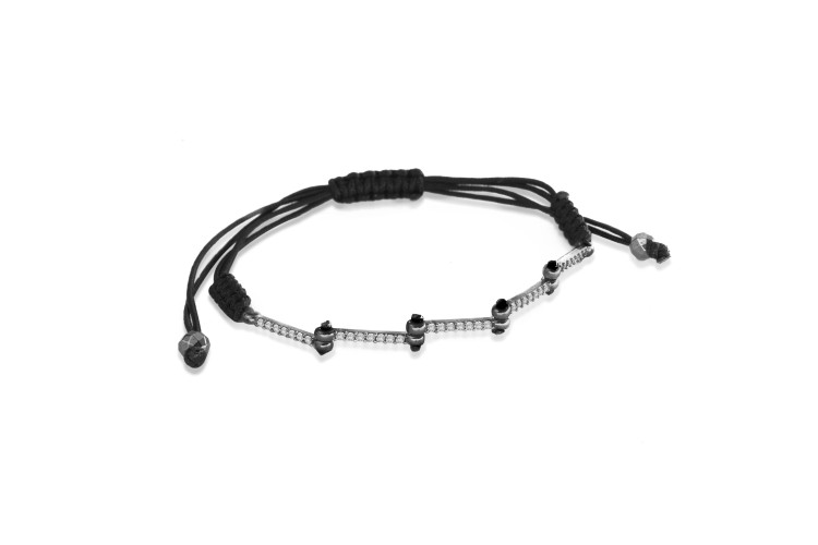 SPARKLE collection women's bracelet with black coloured cord made of black rhodium plated sterling silver 925, decorated with white cubic zirconia.