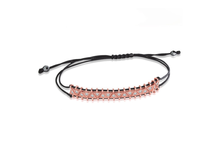 SPARKLE collection women's bracelet with black coloured cord made of rose plated sterling silver 925, decorated with white cubic zirconia.