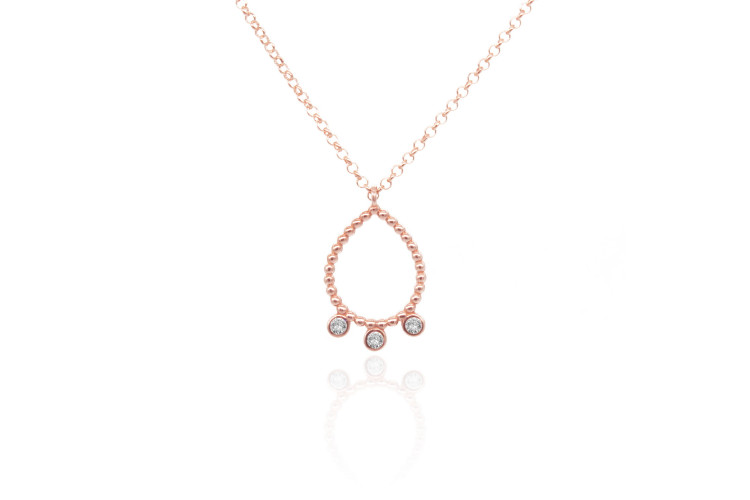 Women's necklace made of rose plated sterling silver 925, decorated with white cubic zirconia.