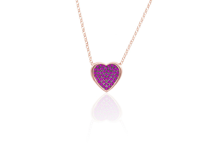 Heart necklace made of rose plated sterling silver 925, decorated with red cubic zirconia.