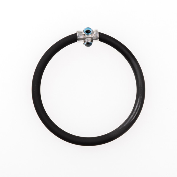 Evil Eye necklace made of rose plated sterling silver 925, decorated with light blue and brown cubic zirconia.