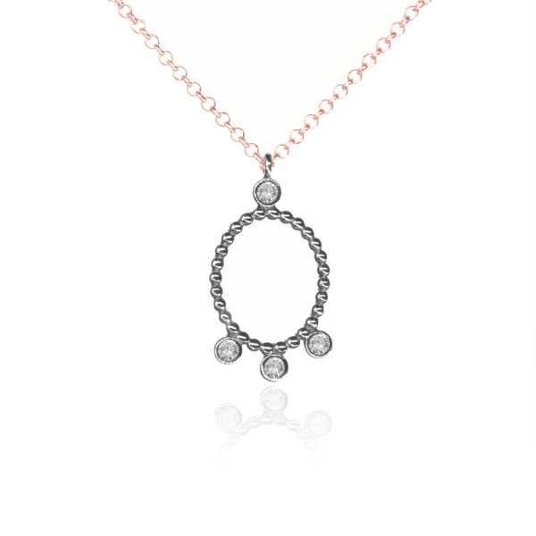 Evil Eye necklace made of rose plated sterling silver 925, decorated with white and black cubic zirconia.