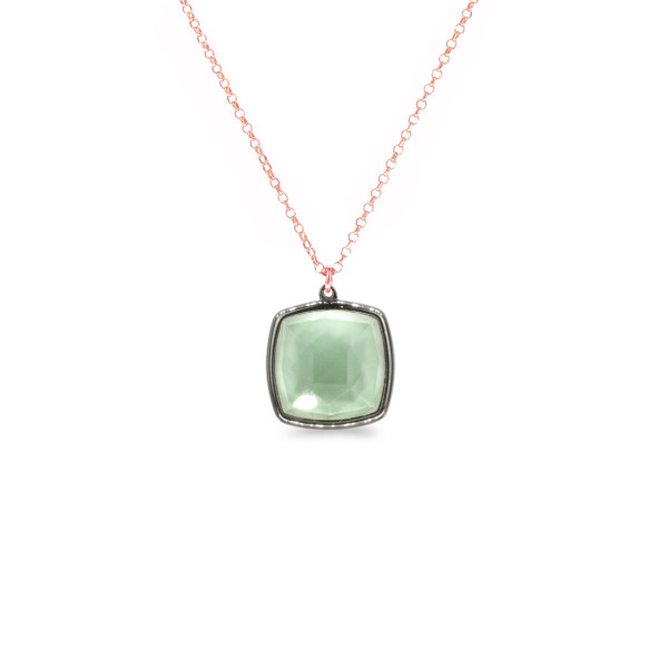 Evil Eye necklace made of rose plated sterling silver 925, decorated with white , light blue and green cubic zirconia.
