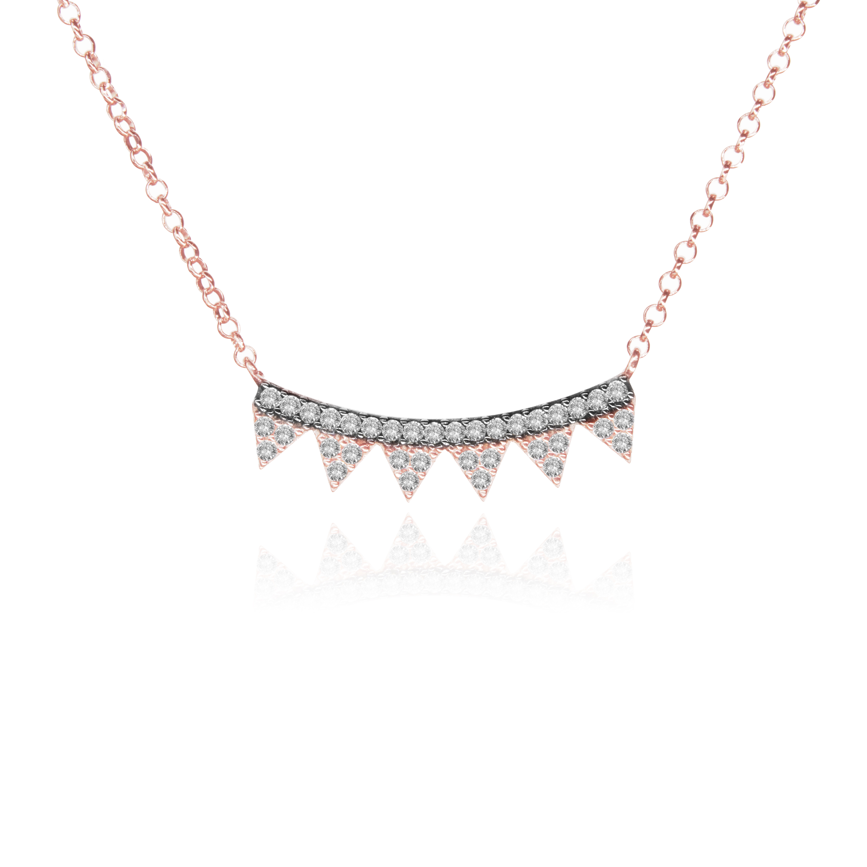 Women's necklace made of rose plated sterling silver 925, decorated with white cubic zirconia.