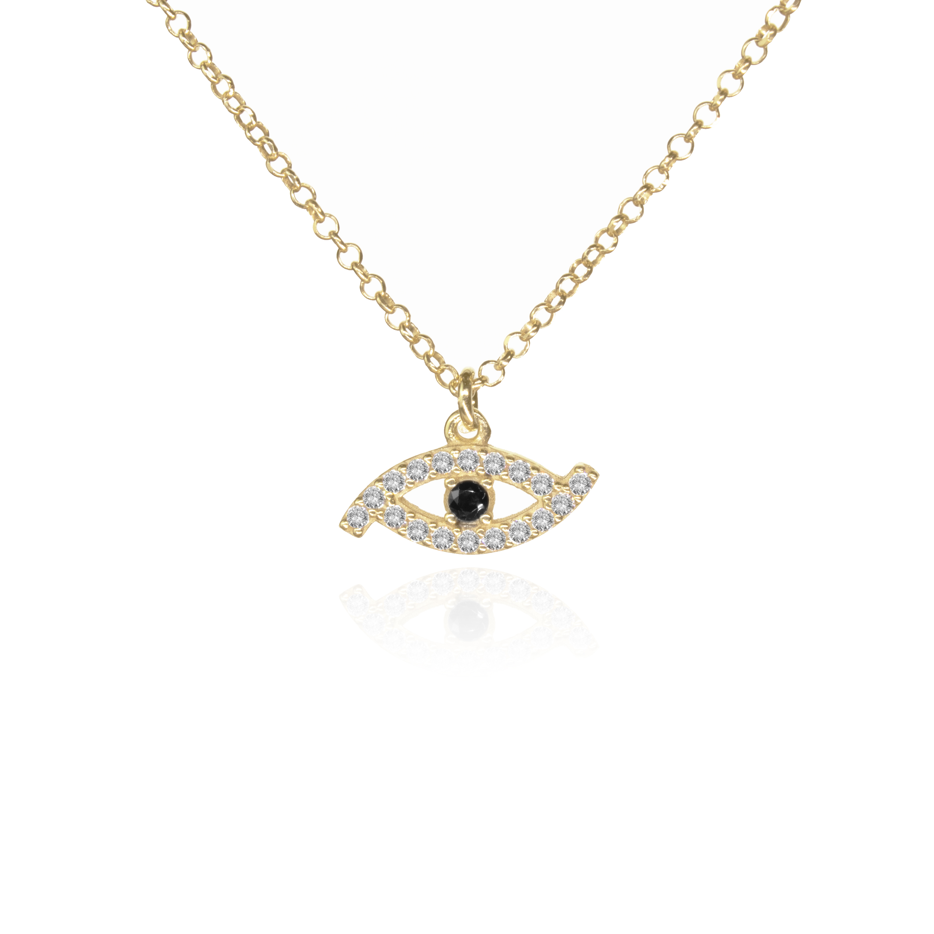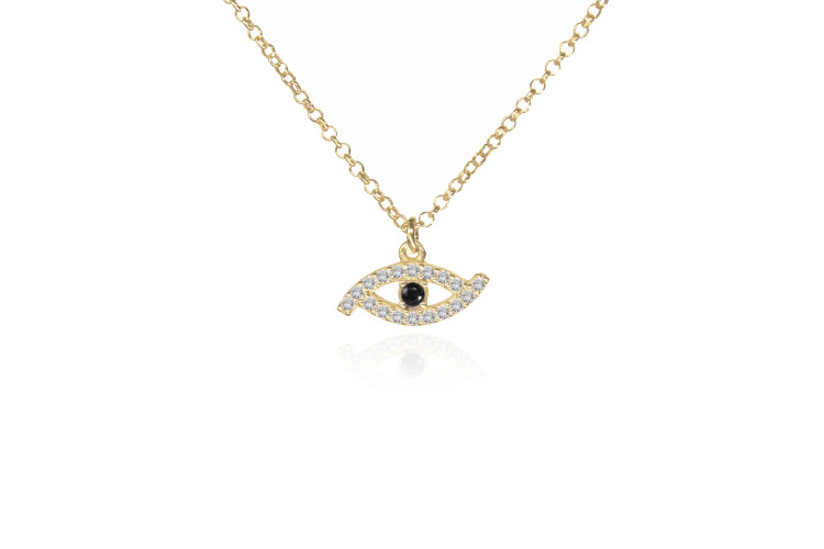 Evil Eye necklace made of gold plated sterling silver 925, decorated with white and black cubic zirconia.